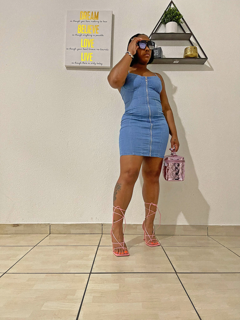 Experience the ultimate comfort and style in our simple denim dress featuring a convenient front o-ring zipper. The dress offers a perfect fit with just the right amount of stretch.