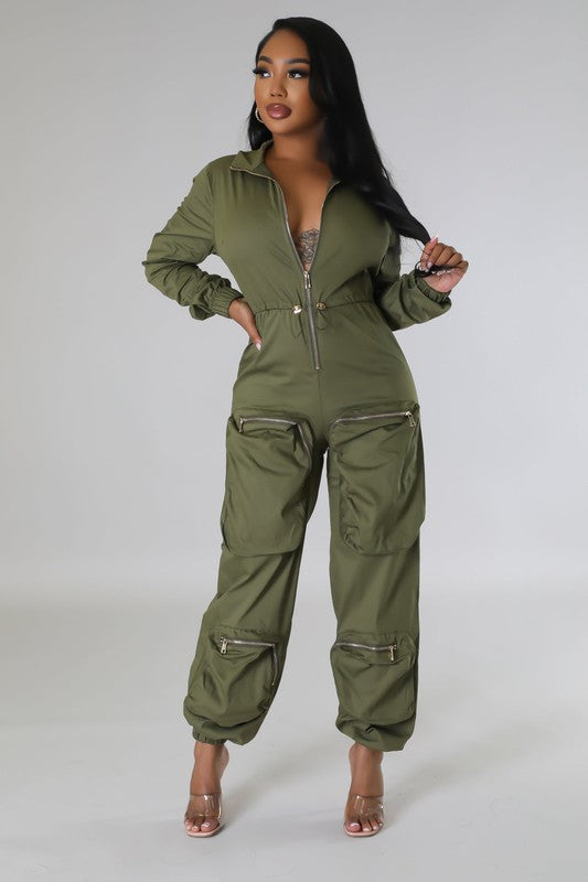 The Caught Up jumpsuit is the perfect blend of style and practicality. Its utility cargo pockets provide maximum storage, so you can keep essential items close at hand. Crafted from lightweight fabric, this jumpsuit has a comfortable fit that will keep you looking sharp all day. With a timeless style and a touch of military-inspired flair, get caught up in superb style!