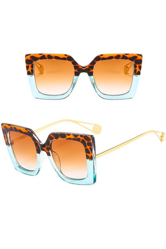 Leopard print & blue sunglasses.