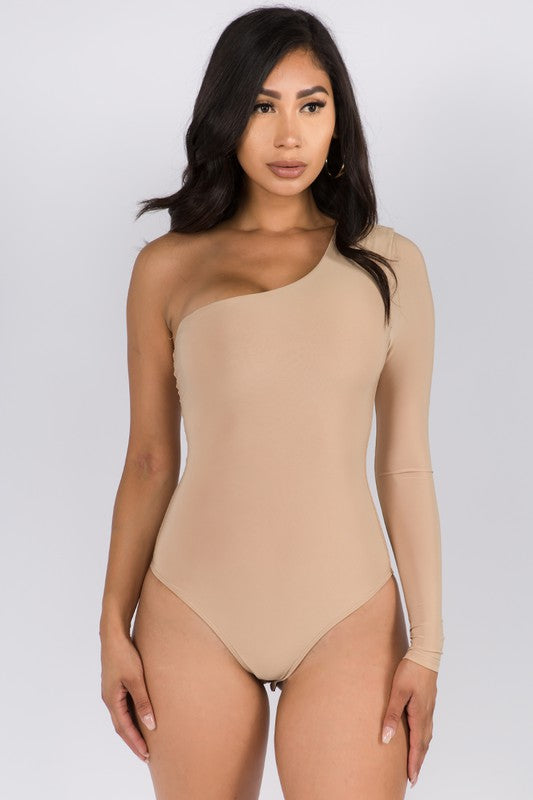 This bodysuit features one shoulder design with a long sleeve, while also offering a stretchy fabric and non-sheer material.