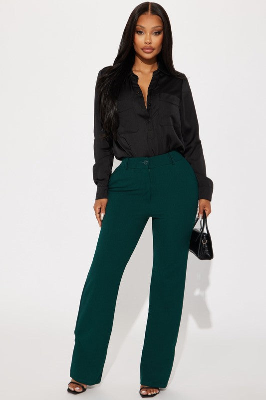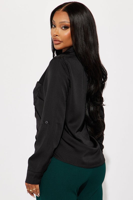 Look sharp in this luxurious satin blouse! It features a timeless button down design with a sleek collar and slim fit. The perfect statement piece for any occasion.